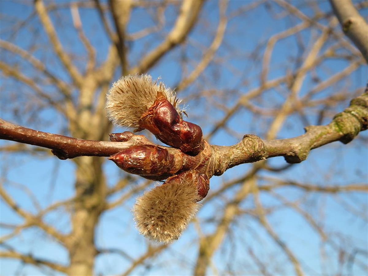 Plody jsou dlouhé a malé zelenohnědé tobolky, které dozrávají v květnu. Při otevření uvolňují malá semena, která jsou uložena v bílých bavlněných chloupcích.