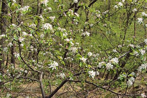 Jabloň lesní je naše původní světlomilná listnatá opadavá dřevina. Jako strom s často šikmým kmenem a rozkladitou až košatou korunou dorůstá do výšky až 8 metrů. Roste i jako velký keř. Dožívá se 100 let. Kvete v květnu. Květy vyrůstají v chudokvětých chocholících a jsou bílé, na spodní straně růžové. Plodem je 2 až 3 cm velká kulovitá žlutá nebo červená malvice s kyselou dužninou a s dřevnatou stopkou, dlouhou asi 1,5 až 2,5 cm.