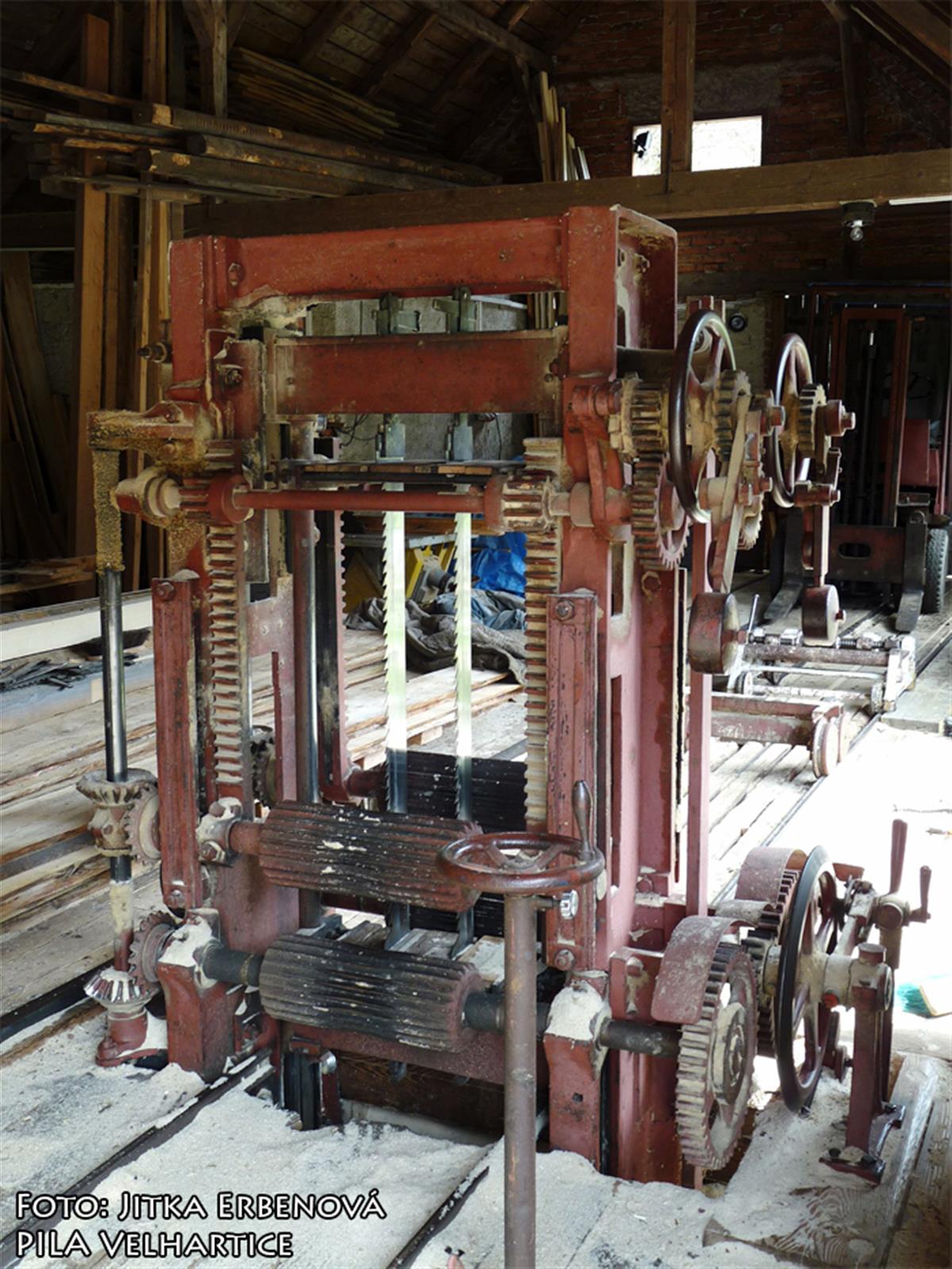 Na celodřevěné rámové pile se z kmene odřezával jeden kus řeziva za druhým a obsluha volila rozměry každého odřezávaného kusu postupně.